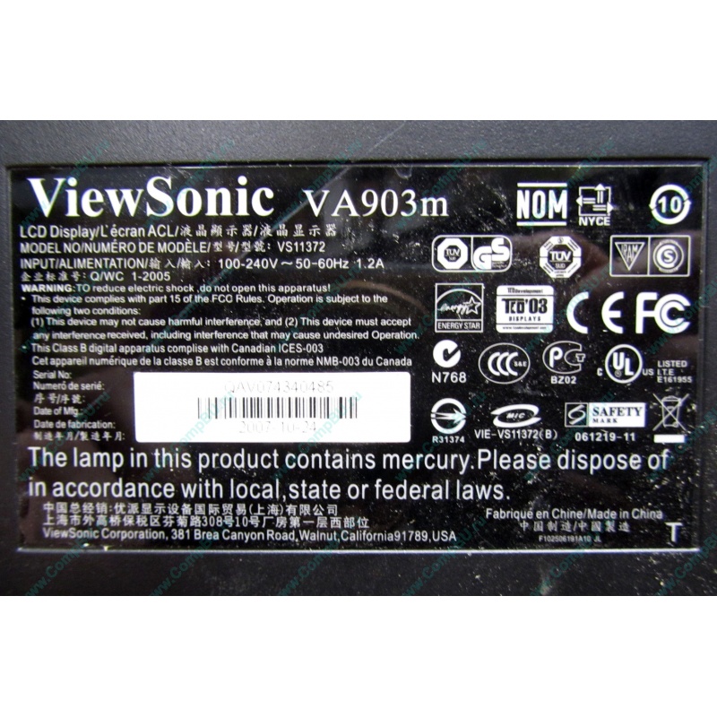 Монитор Б/У 19" TFT ViewSonic VA903 (1280x1024, 5:4) multimedia (есть колонки). Есть дефект изображения: верхние углы заполнены битыми пикселями. Аудиокабель отсутствует. Для видеонаблюдения, наверное, подойдет.
