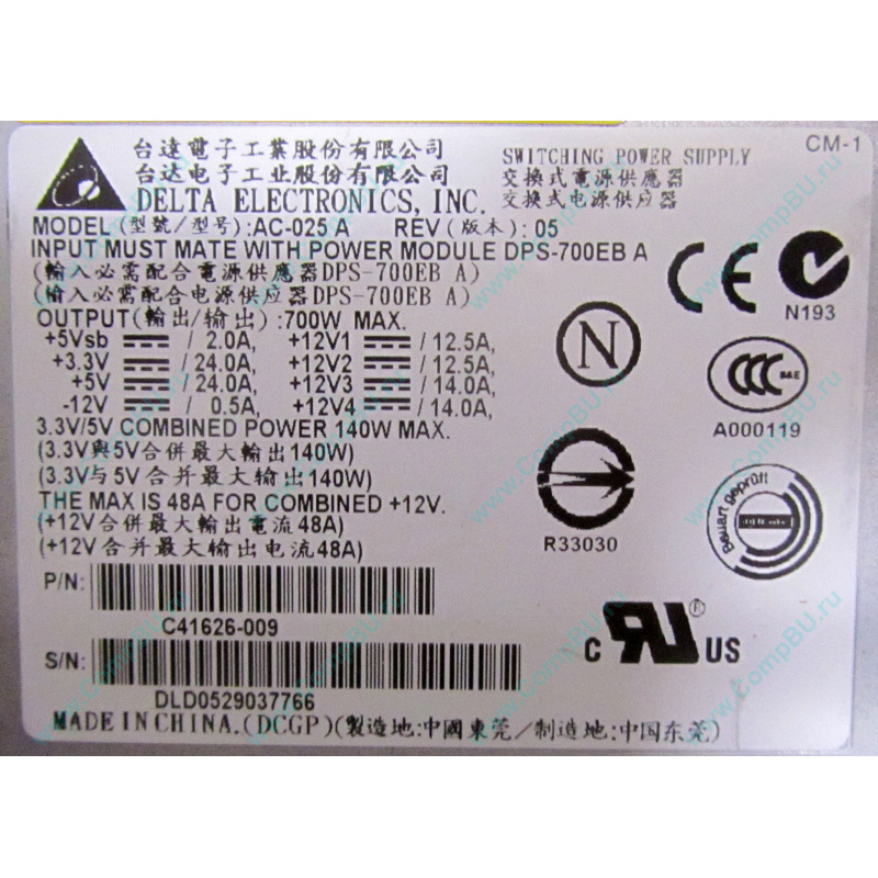 Б/У корзина C41626-009 AC-025 A Rev.05 для блоков питания 700W в серверном корпусе Intel SR2400.